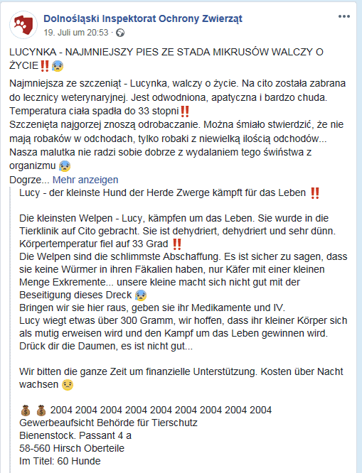 Die polnische Tierschutzorganisation *Dolnośląski Inspektorat Ochrony Zwierząt* (kurz DIOZ) hat am 14.07.2018 im Rahmen einer Intervention auf einen Schlag 60 Hunde aus unvorstellbar katastrophalen Haltungsbedingungen gerettet.