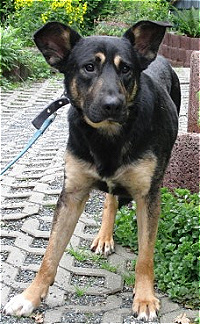 Janik ist schon der Liebling aller. Wenn er im Außenzwinger ist, springt er dort auf die Hütte und schaut zum Fenster rein. Er traut sich auch schon durch seine Luke rein und raus. Da er sich relativ gut anleinen lässt, hat er auch schon größere Spaziergänge hinter sich.