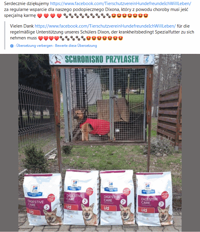 Gerne haben wir geholfen, damit Diablo weiterhin das für ihn wichtige Spezialfutter bekommen kann.