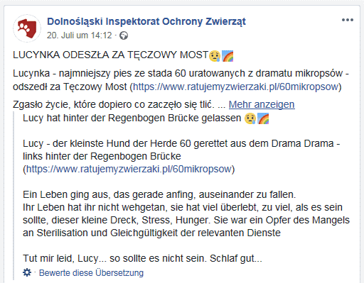 Die polnische Tierschutzorganisation *Dolnośląski Inspektorat Ochrony Zwierząt* (kurz DIOZ) hat am 14.07.2018 im Rahmen einer Intervention auf einen Schlag 60 Hunde aus unvorstellbar katastrophalen Haltungsbedingungen gerettet.