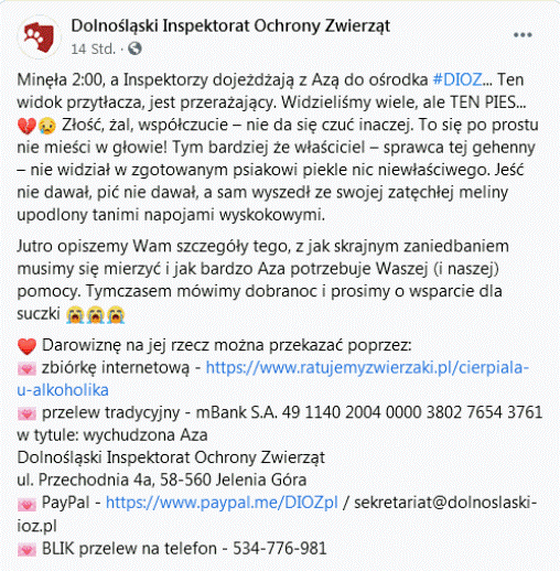 Nach 2:00 Uhr morgens pendeln die Inspektoren mit Aza zum # DIOZ-Zentrum ... Diese Aussicht ist überwältigend, es ist erschreckend. Wir haben viel gesehen, aber DIESER HUND ... 💔😢 Wut, Bedauern, Mitgefühl - Sie können sich nicht anders fühlen. Es passt einfach nicht in deinen Kopf! Dies umso mehr, als der Besitzer - der Täter dieser Tortur - in der Hölle, die für das Hündchen vorbereitet war, nichts Falsches sah. Er gab kein Essen, er gab kein Getränk, und er selbst kam aus seiner muffigen Höhle, die mit billigen alkoholischen Getränken entwertet war. Morgen werden wir Ihnen die Details beschreiben, mit welcher extremen Vernachlässigung wir umgehen müssen und wie sehr Aza Ihre (und unsere) Hilfe benötigt. In der Zwischenzeit sagen wir gute Nacht und bitten um Unterstützung für die Frau 😭😭😭