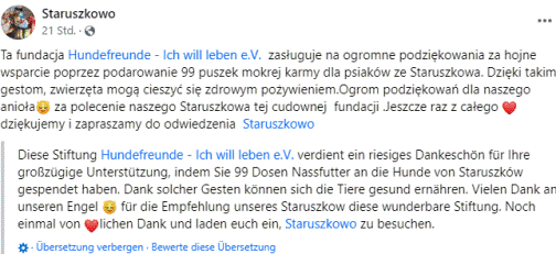 Der von Krystyna Seemayer geführte Gnadenhof STARUSZKOWO muss aktuell 62 alte und kranke Hunde versorgen. Da wird das Futter schnell knapp und so haben wir über zooplus eine Futterlieferung veranlasst.
