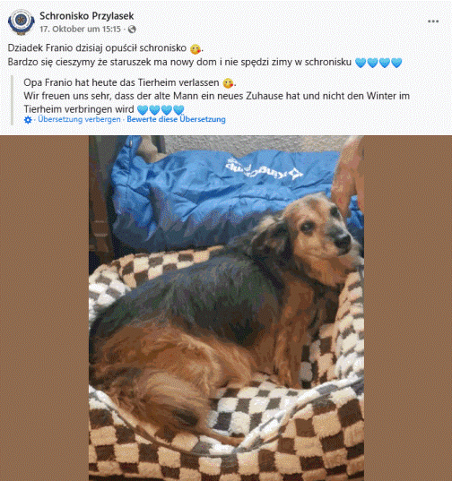 Das Glück war an seiner Seite. Denn Franio´s neues Frauchen hatte ihn auf der Homepage des TH Luban entdeckt und nach mehreren Kontakten incl. persönlichem Kennenlernen durfte er sein neues Zuhause beziehen. Wir sind überglücklich!